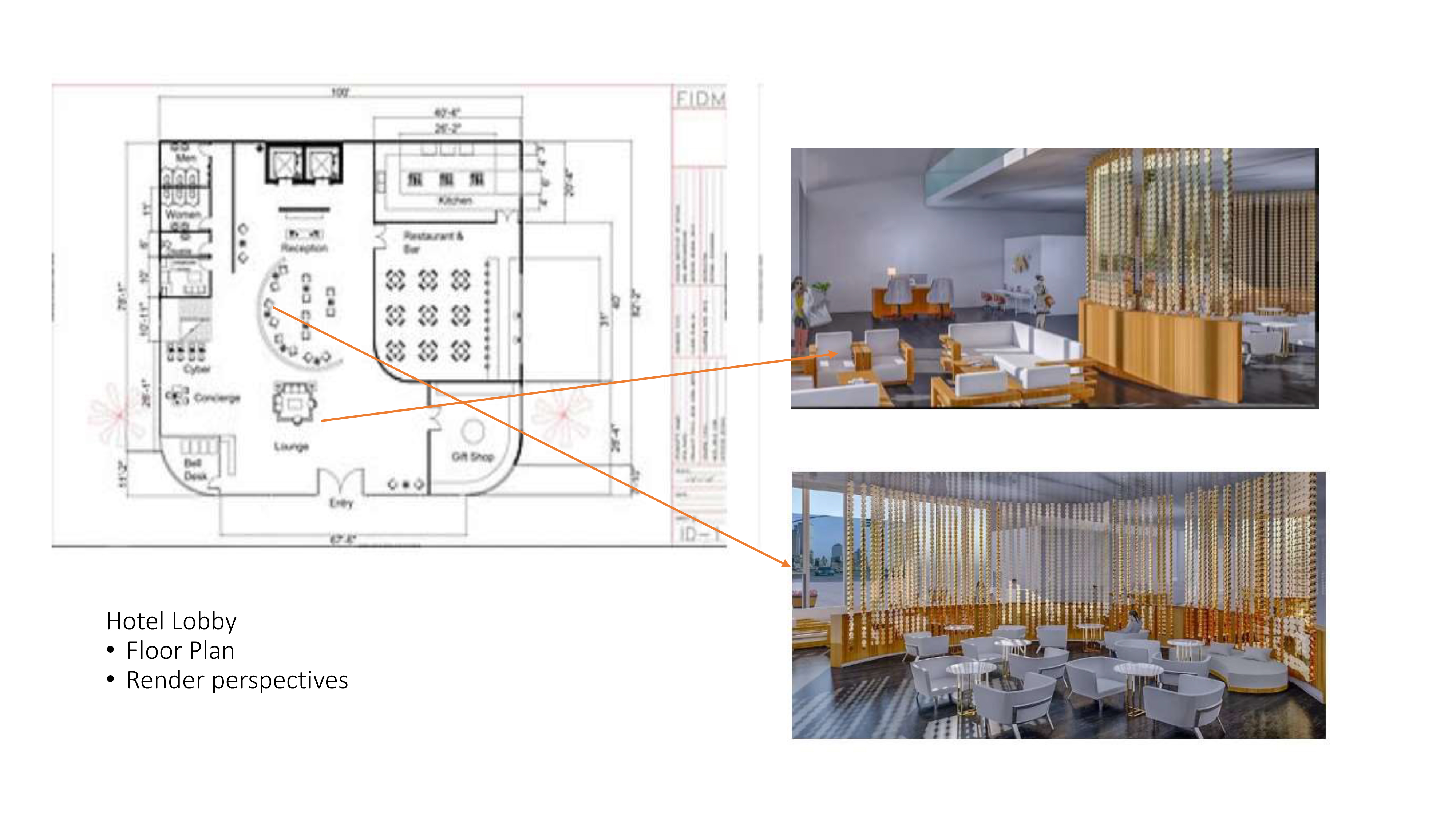 Small scale boutique hotel located in the heart of downtown, carefully curated furniture and lighting arrangements foster a sense of privacy and charm. Use of gold light fixtures as statement pieces and pattern walls and soft textiles to create depth and a tactile experience.